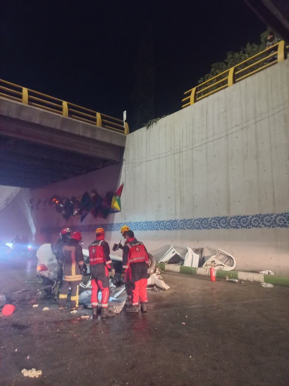 به گزارش صبح مشهد به نقل از روابط عمومی سازمان آتش نشانی مشهد، آتشپاد دوم حسین صالح با اعلام این مطلب گفت: ساعت ۱:۳۰ بامداد شنبه (۳ آبان ۱۴۰۴) در پی اعلام مرکز فرماندهی ۱۲۵ مبنی بر سقوط یک دستگاه خودرو تیبا از بالای پل بر روی یک موتور سیکلت بلافاصله آتش نشانان ایستگاه ۸ به همراه خودروهای نجات و پیشگیری به زیرگذر پنجتن به سمت پل فجر اعزام شدند.